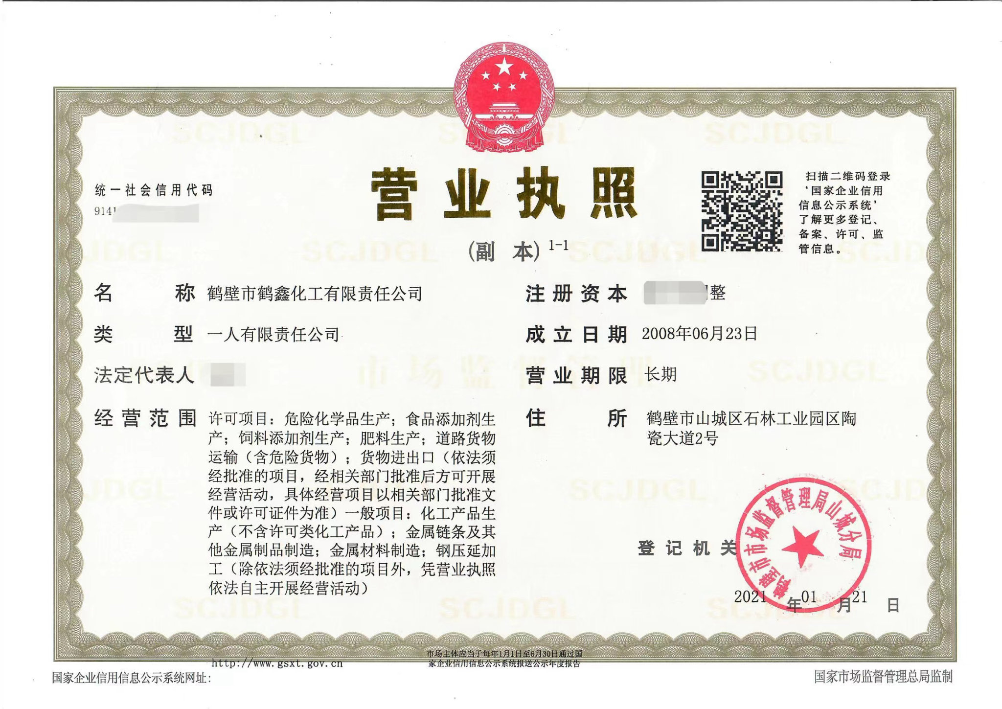 單位名稱:鶴壁市鶴鑫化工有限責任公司