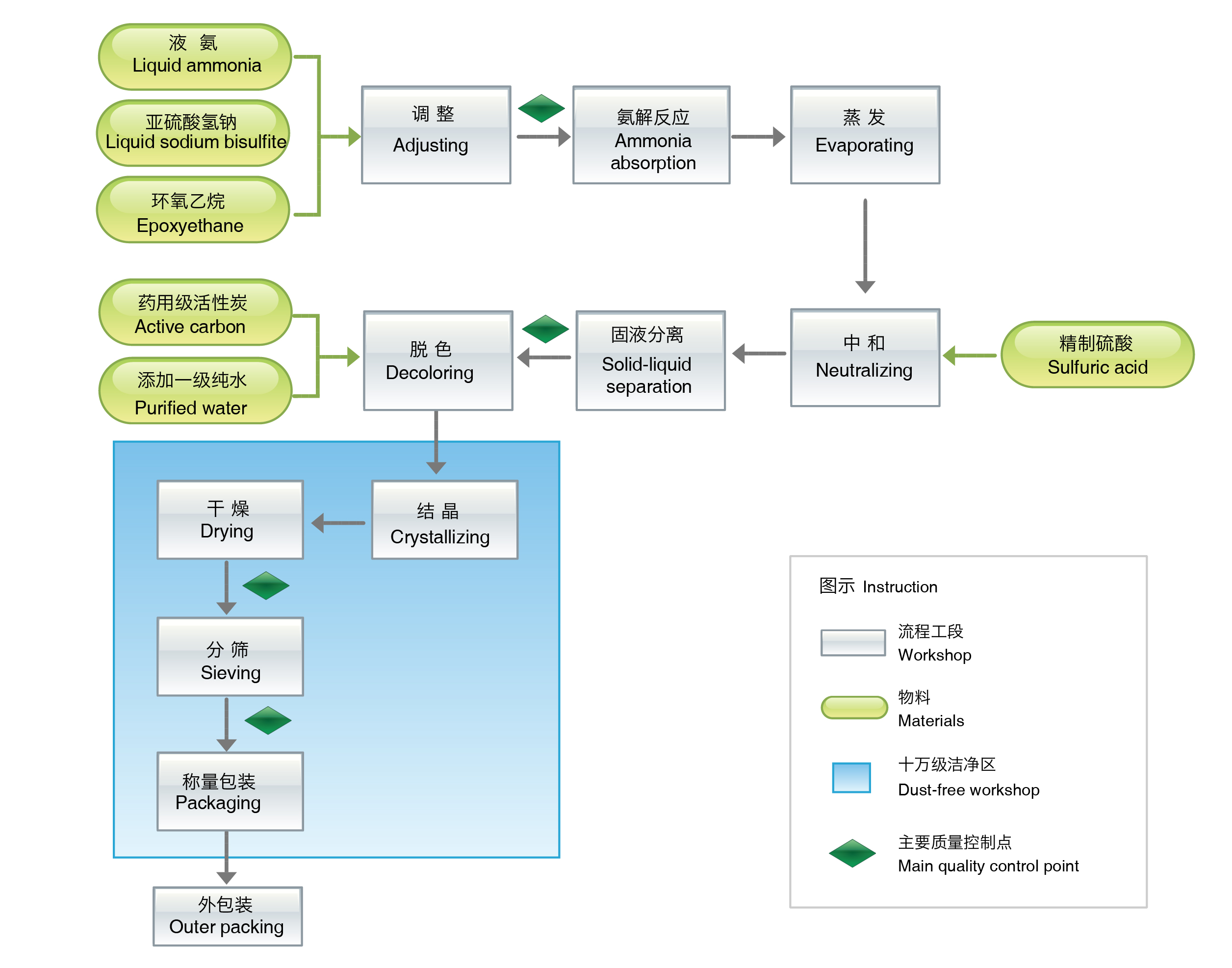 目前我們公司擁有年產(chǎn)1 萬(wàn)多噸高品質(zhì)的營(yíng)養(yǎng)強(qiáng)化劑--“欣鶴康”牌?;?酸的生產(chǎn)車間,產(chǎn)品質(zhì)量符合中國(guó)食品安全國(guó)家標(biāo)準(zhǔn)GB14759、中國(guó)藥典 CP2015、日本藥典JP17、美國(guó)藥典USP40標(biāo)準(zhǔn)要求。公司擁有2300平方米的 十萬(wàn)級(jí)潔凈生產(chǎn)車間,采用現(xiàn)代化的生產(chǎn)工藝和設(shè)備,以及可靠的檢測(cè)手段和 嚴(yán)格的品質(zhì)管控,確保產(chǎn)品質(zhì)量的安全穩(wěn)定 。?